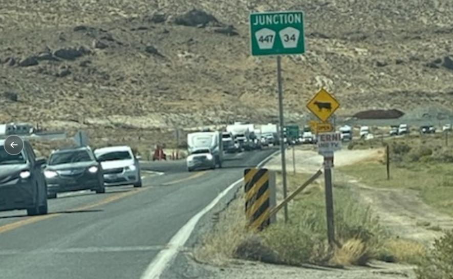 9月4日下午1点,火人节尚未正式结束时,当地 Washoe 县执法部门拍摄了这张照片,显示公路上的退场车流量已经相当大了。