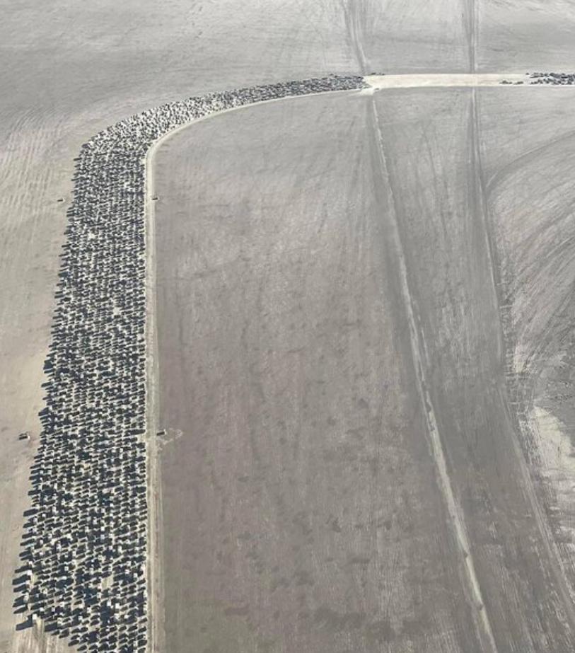 肉眼可见就有至少5条车道,然而这只是整个退场队伍宽度的三分之一: