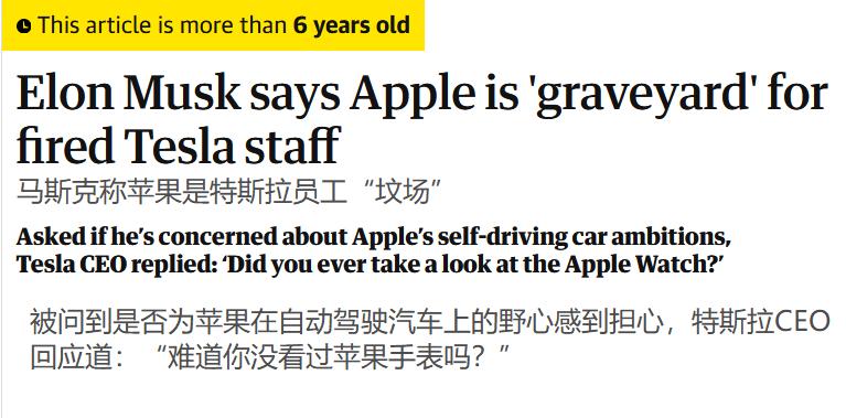 1.The Guardian: Elon Musk says Apple is 'graveyard' for fired Tesla staff
