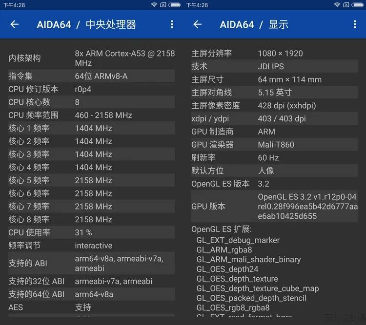 首先从基础设计上来看,发布于2017年的澎湃S1使用了28nm制程打造。其CPU部分是由四颗2.2GHz的Cortex-A53与四颗1.4GHz的Cortex-A53组成,GPU部分则为主频高达922MHz的Mali-T860MP4。