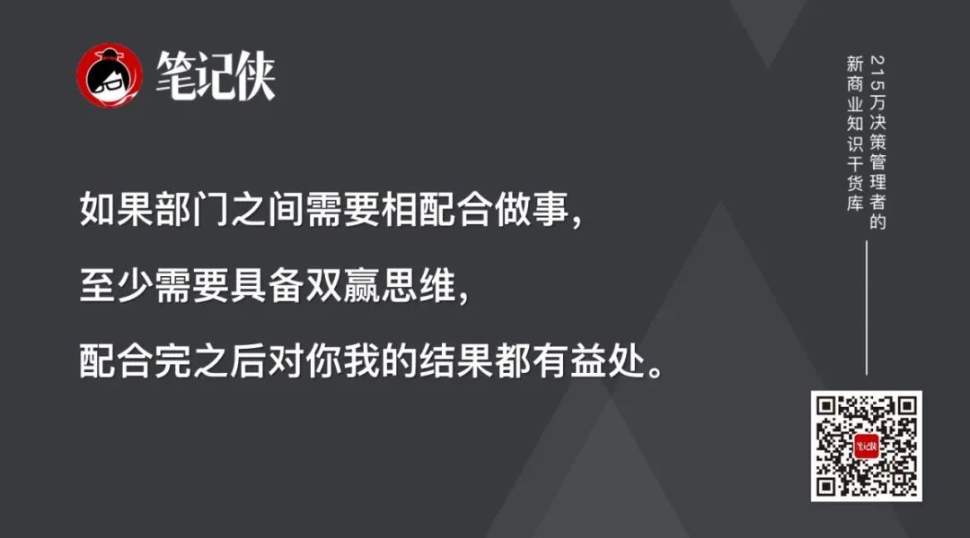 如果部门之间需要相配合做事,至少需要具备双赢思维,配合完之后对你我的结果都有益处。而不是说为了好的KPI逼着你做一些伤害利益的事情,最后对方就无法有效配合。