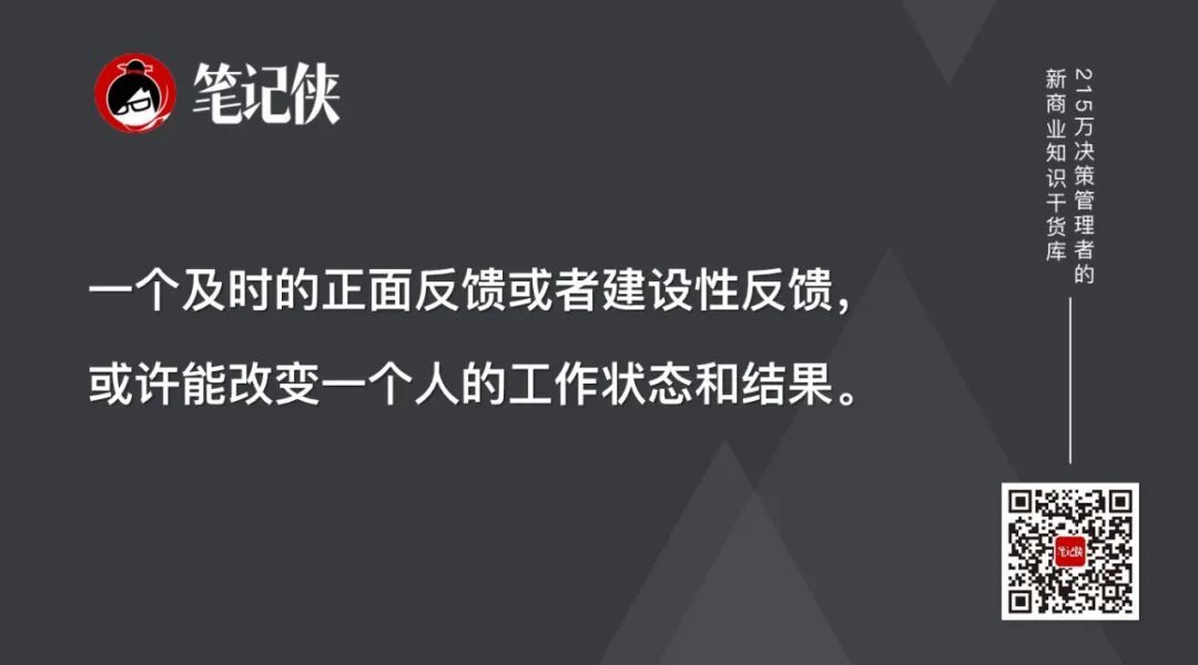 反馈很重要。一个及时的正面反馈或者建设性反馈,或许能改变一个人的工作状态和结果。