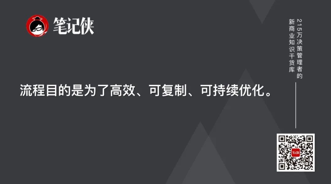 流程目的是为了高效、可复制、可持续优化。用于培训也方便,来了新人介绍清楚流程,大家也就明白工作是如何开展的了。