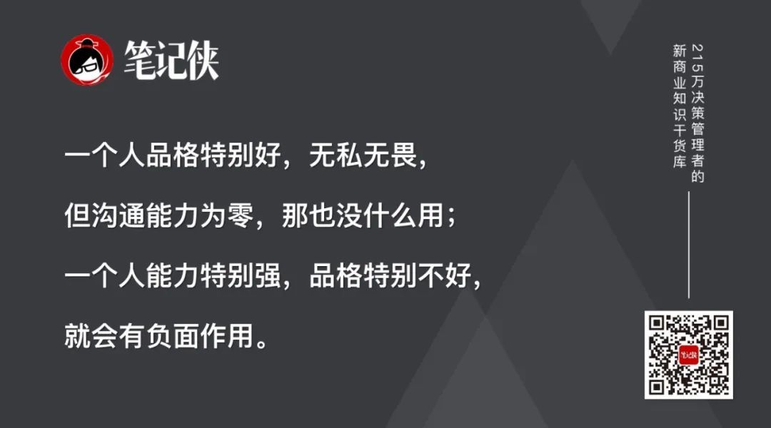 一个人品格特别好,无私无畏,但沟通能力为零,那也没什么用;一个人能力特别强,品格特别不好,就会有负面作用。