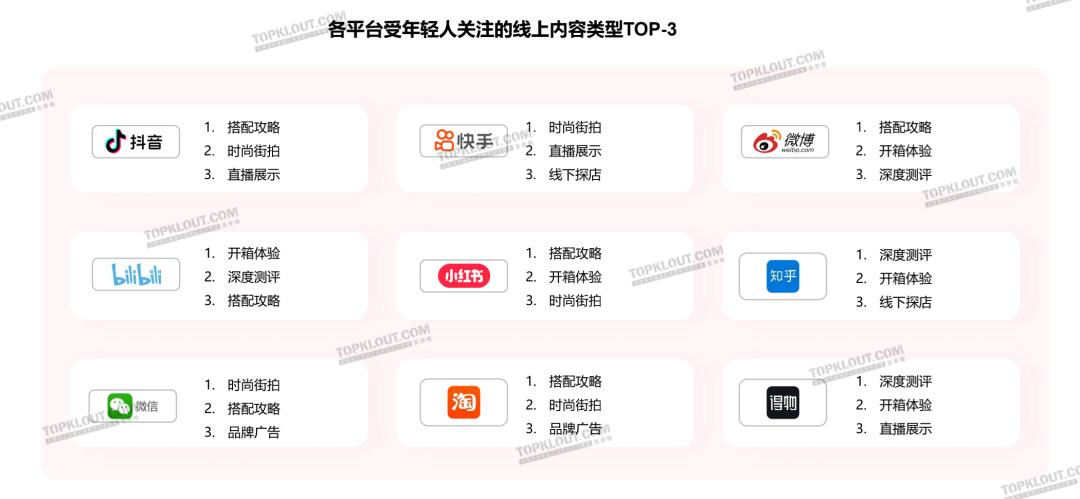 年轻人往往多平台联动,在不同平台关注不同类型的服装内容。