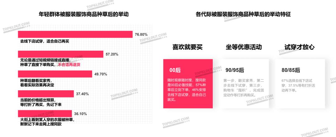 近八成年轻人认为试穿是必要环节,超五成抱有“不合适就退货”心态,在“种草”后直接购买。