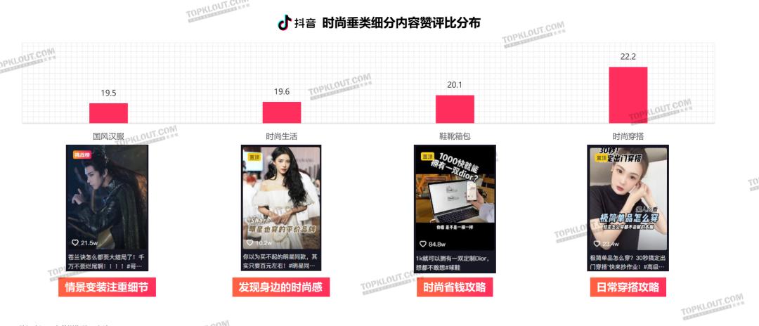 整体来看,年轻人对穿搭内容的要求聚焦在“实惠时尚”方面,如何在内容中毫无违和地将时下潮流元素与性价比相融合,成为刺激营销增长的重要技能之一。