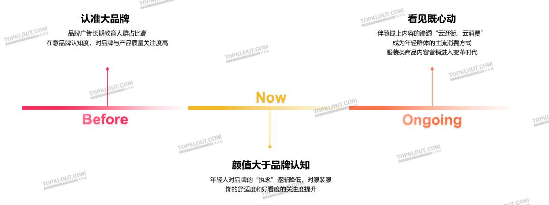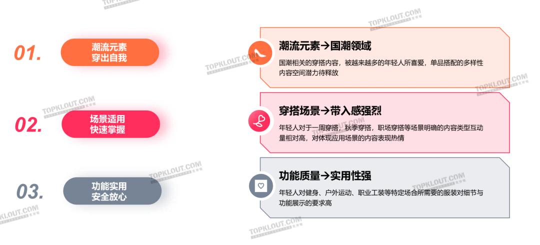 总的来看,服饰品类营销呈现出追潮流、重理念、强内容三大特征。