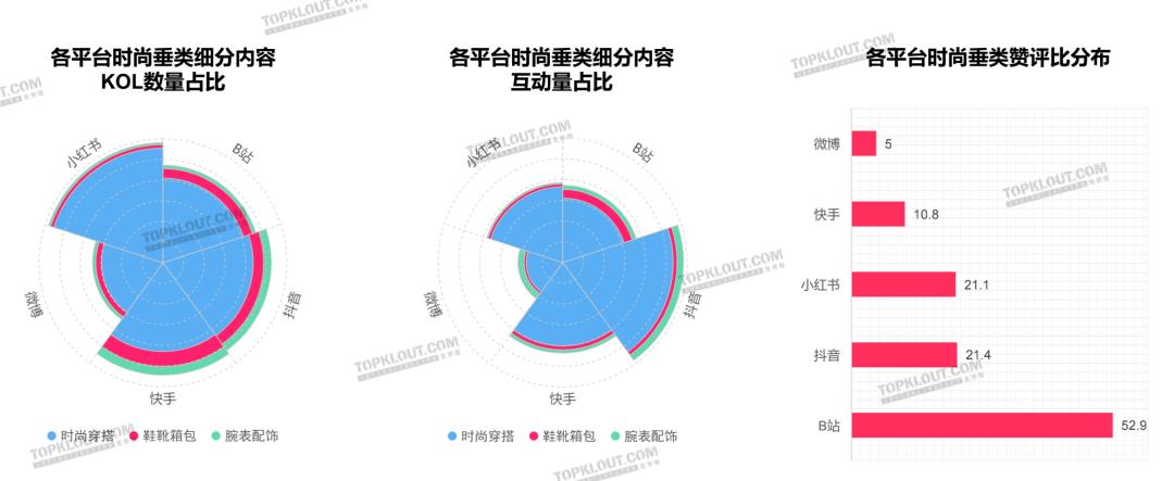 时尚穿搭类内容小红书产能高,抖音互动较多,微博的评论更深入。