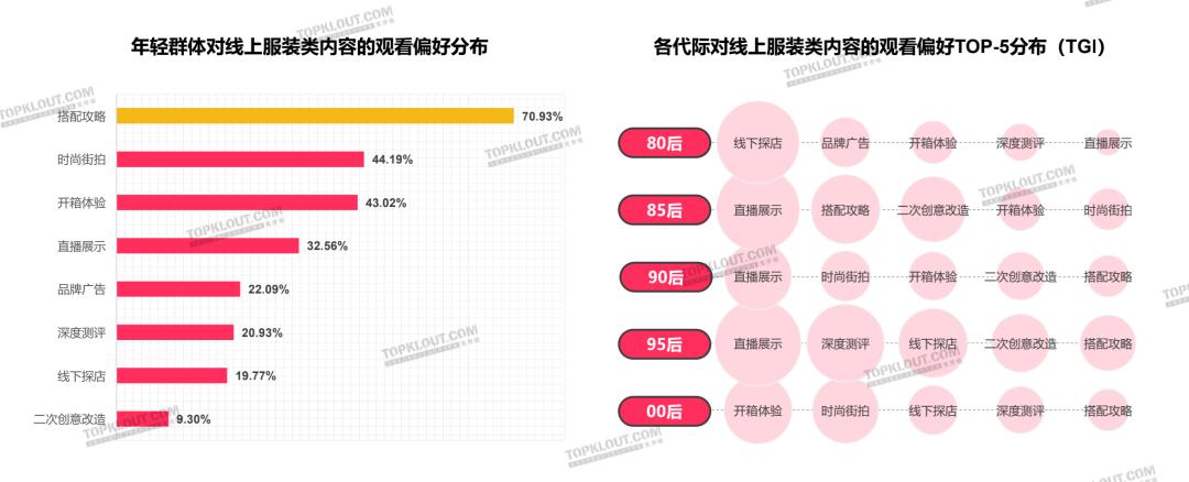 观看穿搭攻略是年轻人的常规操作,00后热衷于观看开箱内容,80后则更加关注探店。