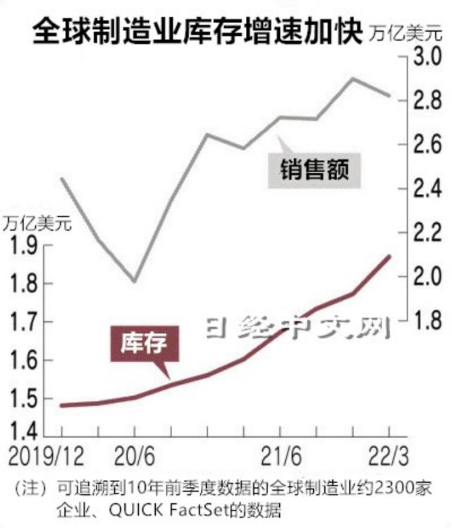 相比国内情况,国际芯片厂商的库存量增加更为明显。日经亚洲以全球近2350家芯片相关上市制造公司为对象,整理得知2022年一季度库存金额比2021年年底暴增约970亿美元,库存剩余量和增量皆创十年来新高。