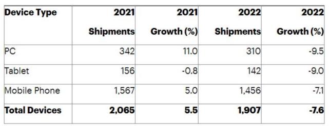 从终端市场看,全球领域的个人电脑、手机等设备都出现了需求的下降。Gartner数据表示,今年第二季度全球个人电脑需求大幅下降,电脑制造商在4月至6月间的出货量为7200万台,较去年同期下降12.6%,为九年来最大降幅。