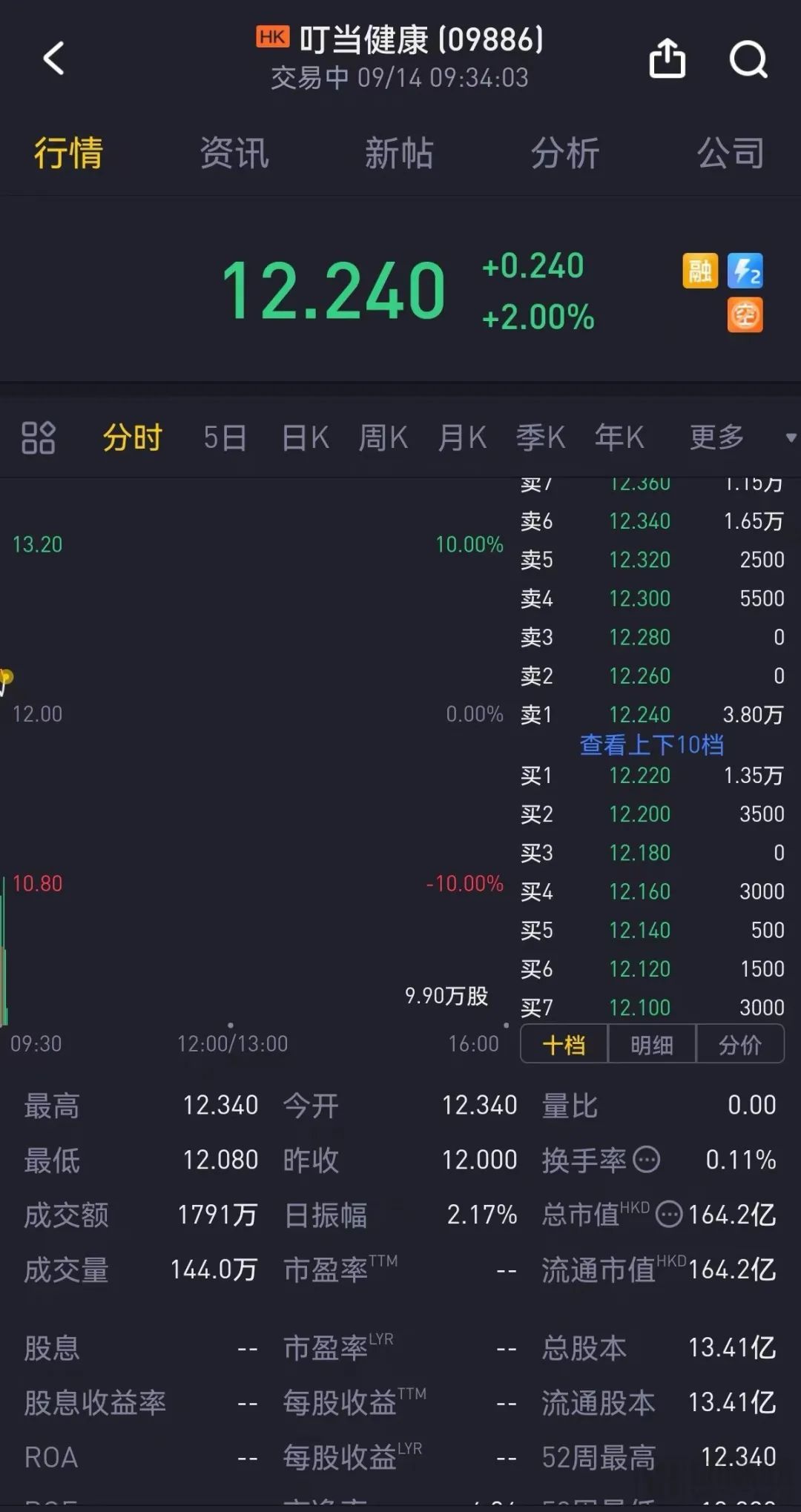 2022年互联网医疗健康又一家上市公司诞生!今日,叮当健康成功登陆香港联交所。叮当健康发行价12港元,开盘微涨2%,市值达到了163亿港元。