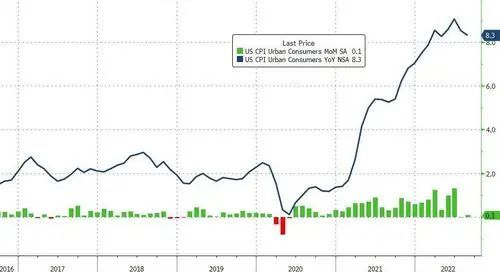 美东时间13日周二公布的美国8月CPI较市场预期更强劲,同比增速从7月的8.5%回落到8.3%,高于预期的8.1%,环比增速从7月的零升至0.1%,而市场预期环比下降0.1%。