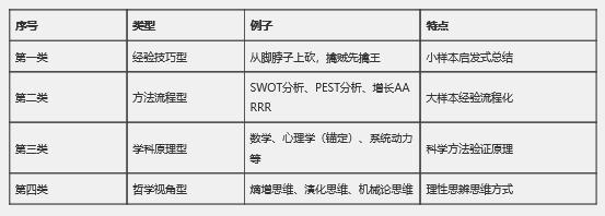 这四类不同层次的思维模型,都是解决问题的有效策略,可根据遇到具体问题针对性选择。