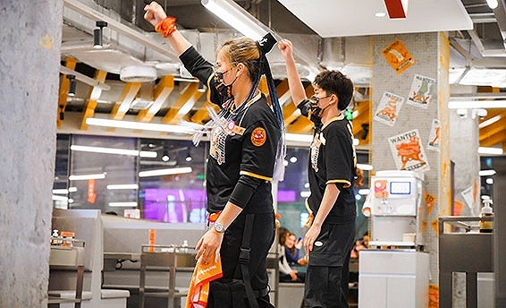 位于北京荟聚购物中心的新店延续了这样的操作,不难发现,门店店员年龄主要集中在20-25岁区间内,穿着较为时尚,到了晚上6时半和8时两个时间点,他们也同样会“变身”为舞者,带来快闪舞蹈。