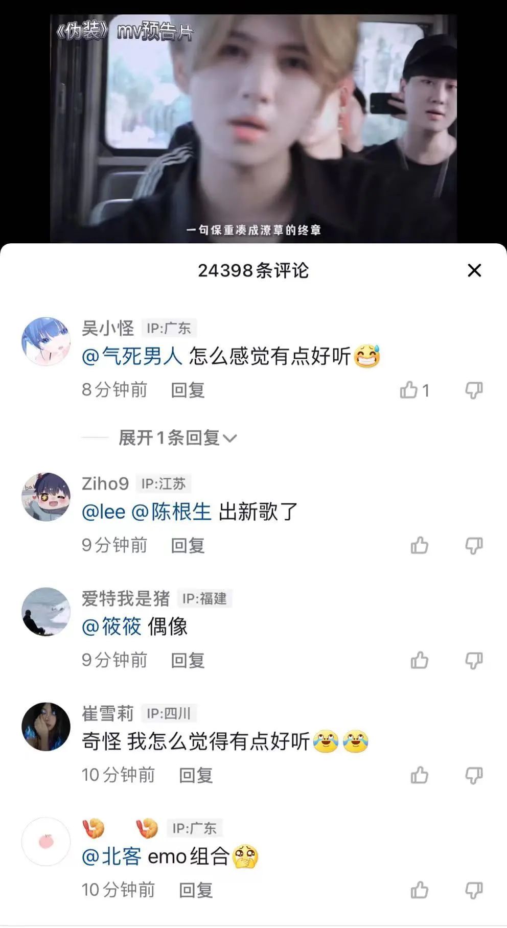 从受众端来看,认可ESO的用户与真正明星的粉丝是相对对立的。打开ESO视频的评论区,除了抵制的声音外,我们也能看到相对正面的评论,“黄子诚不帅但像,鹿哈不像但帅”、“怎么办,歌还有些好听”……这部分留言的用户大多是通过夸奖山寨偶像的方式,抱着嘲讽的态度表达自己对“饭圈”文化的反感和不满。从这个角度来看,这些模仿者的视频成功将持有不同观点的用户集中在一起,在双方的探讨与争论中攫取到了流量。