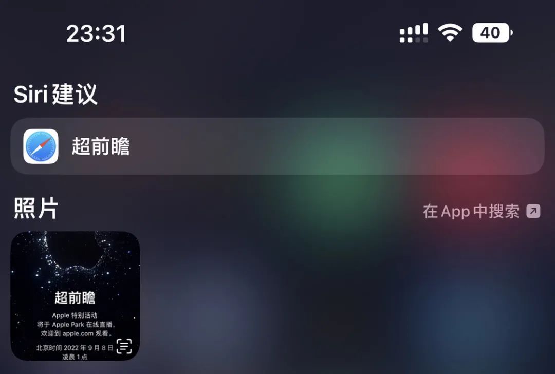 此外,相册中包含文字的部分,可以在聚焦搜素中检索到。实况文本照片搜索功能只适用于配备 A12 仿生或后续芯片的 iPhone,支持英语、中文、法语、意大利语、德语、日语、韩语、葡萄牙语、西班牙语和乌克兰语。