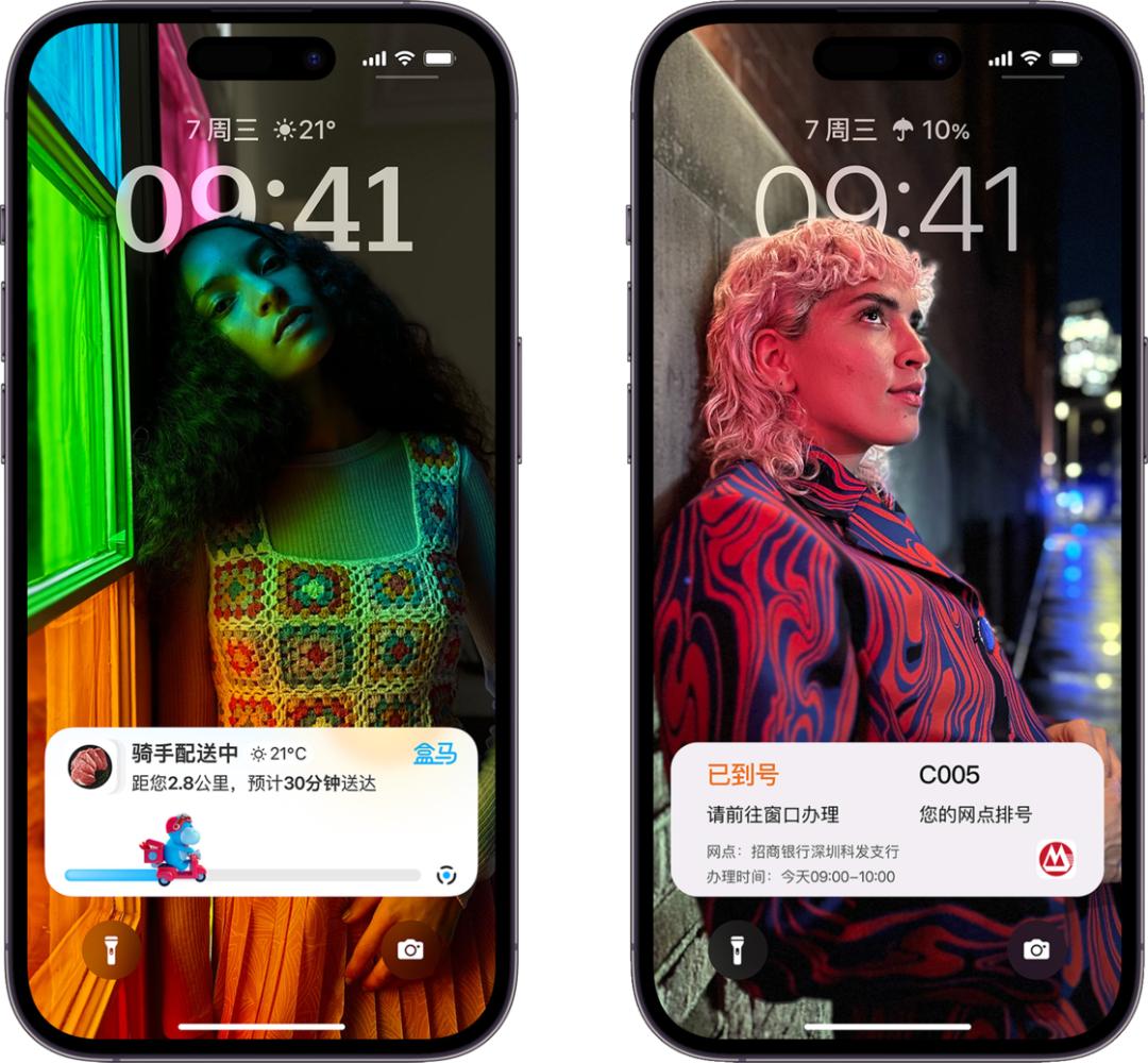 此外,从 iPhone 14 Pro 机型的介绍页面可以看到,国内的盒马生鲜以及招商银行已经在测试版本中适配了实时活动功能。