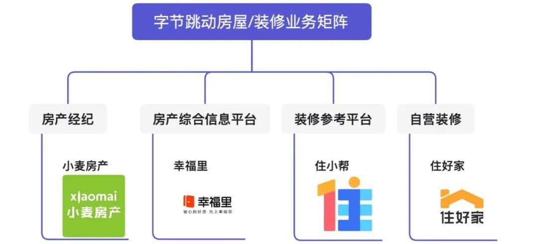随着小麦房产、住好家等业务的亮相,字节已经形成了一个完整的围绕居住的业务体系和版图。从房产综合信息平台“幸福里”,到线下房屋经纪“小麦房产”,再到一站式家装服务平台“住小帮”,以及自营的装修品牌“住好家”,可以说,用户从选房,到买房,再到装修决策参考,以及最后的装修,都可以通过字节旗下的业务完成一条龙服务。
