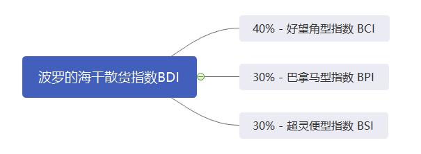 由上可知,波罗的海干散货指数BDI是一个合成指数,分别由40%的好望角型指数 (Baltic Capesize Index,缩写BCI),30%的巴拿马型指数(Baltic Panamax Index,缩写BPI)以及30%的超灵便型指数(Baltic Supramax Index,缩写BSI)三种指数加权计算得来。