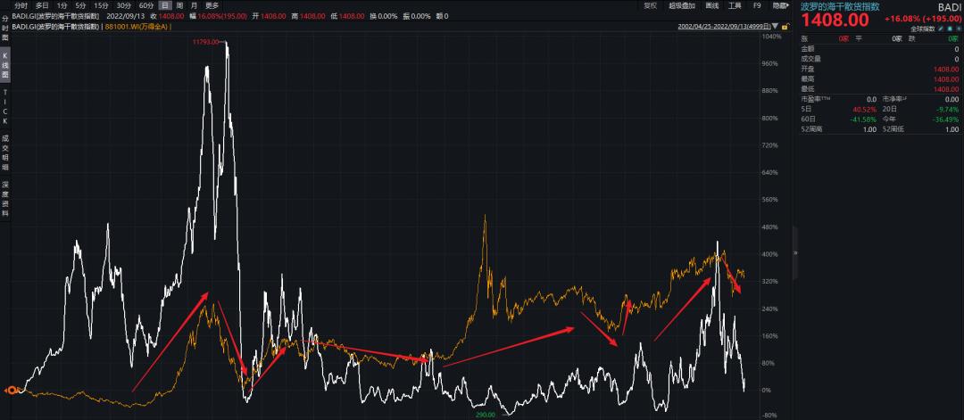 在BDI指数这里,我们能做的就是优先去分析其分支的3个权重指数,找出影响最深,波动最大的那个,然后根据其所涉及到的运输方式及货物去搜索信息,结合时事做出推测。