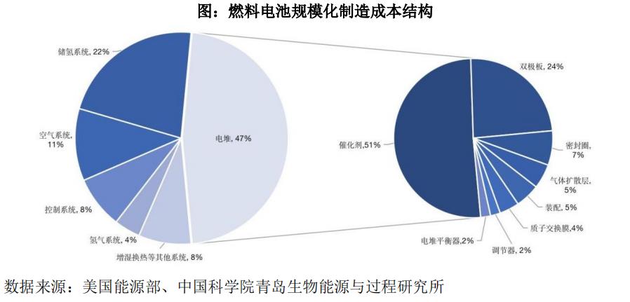 目前在国补、地补政策的加持下,部分地区车辆已经可以做到与柴油车平价,这将加快燃料电池车辆规模化发展,并联动上游核心部件及材料成本进一步下降。