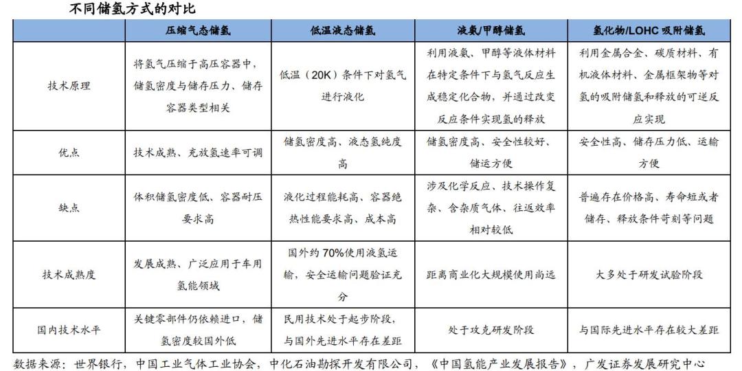 根据氢的物理特性与储存行为特点,可将各类储氢方式分为:压缩气态储氢、低温液态储氢、液氨/甲醇储氢、吸附储氢(氢化物/液体有机氢载体(LOHC))等。