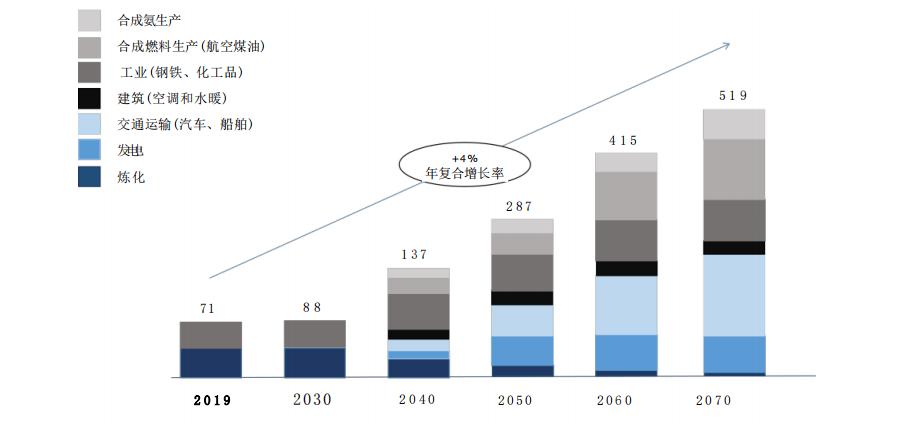 需求方面,国际能源署预测,到2070年全球对氢气的需求将达到5.2亿吨。