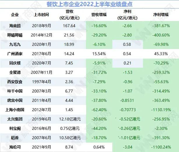 糟心:14家上市餐企半年亏掉13.83亿元,仅3家盈利