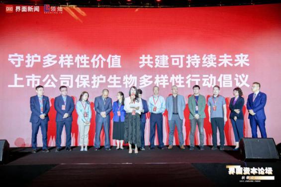 最后,在上市公司保护生物多样性行动倡议的环节中,作为生态一份子,上海领灿、界面新闻、贝泰妮联手,并邀请生物多样性保护生态圈各方共同见证,向广大上市公司发出倡议: