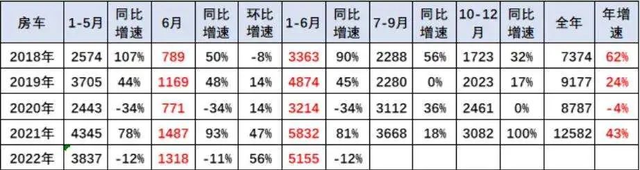 而根据中国汽车流通协会发布的数据显示:仅2022年第一季度,全国房车市场销售就有2425辆,为近5年同期最高。