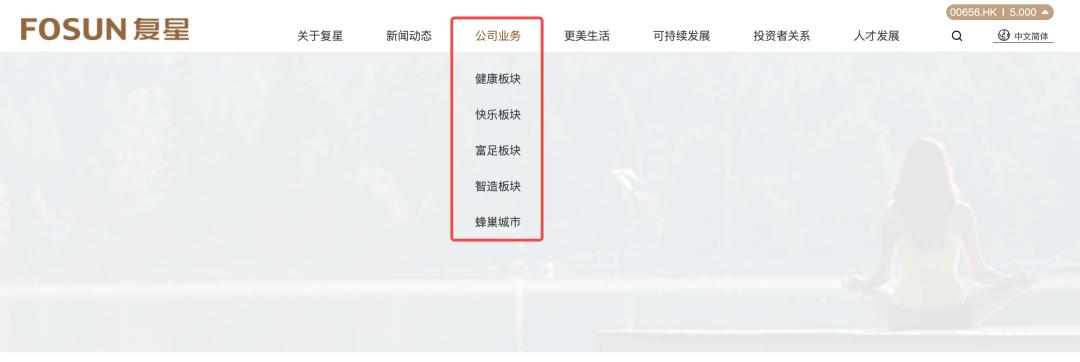 复星集团官网截图