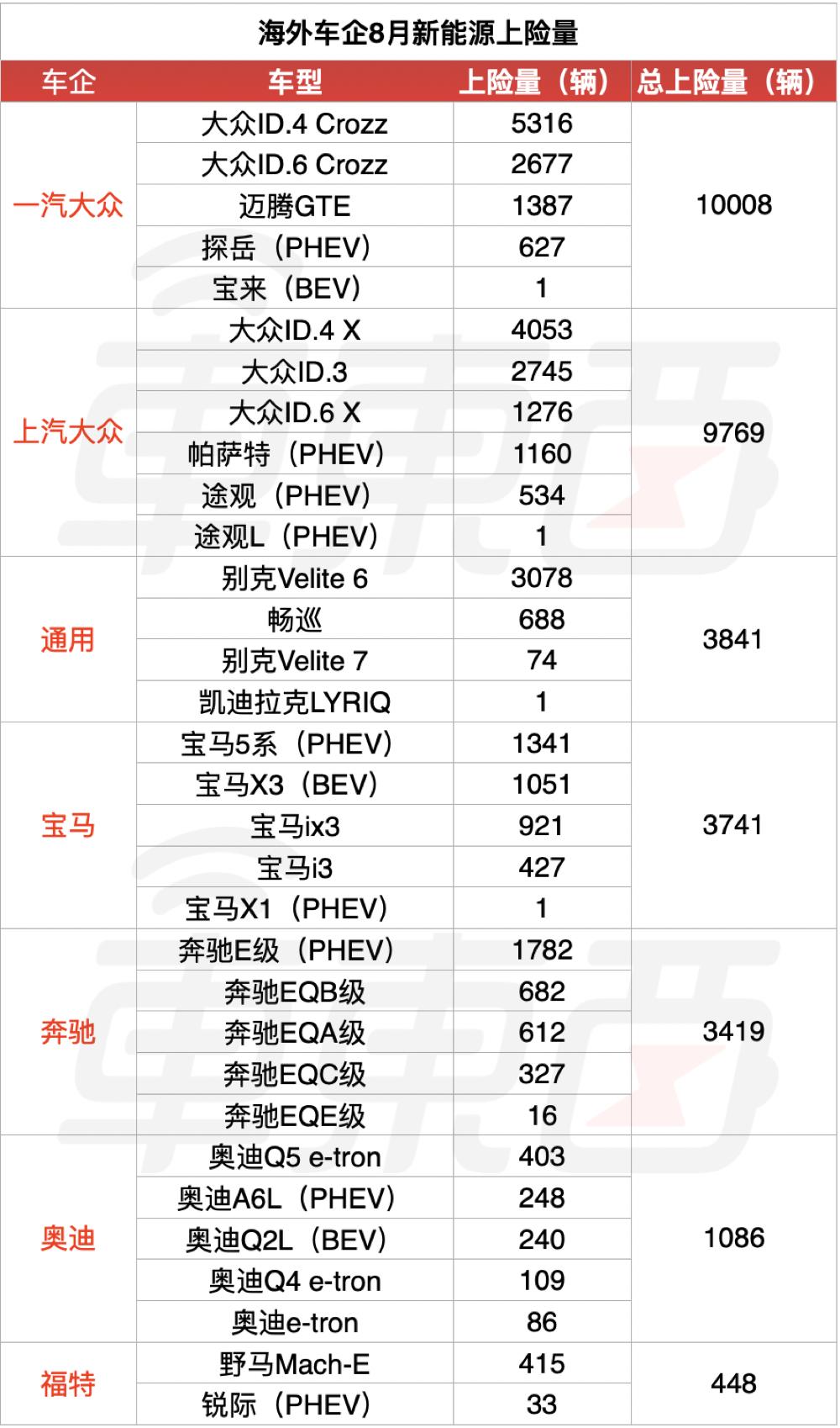 ▲海外车企8月新能源上险量