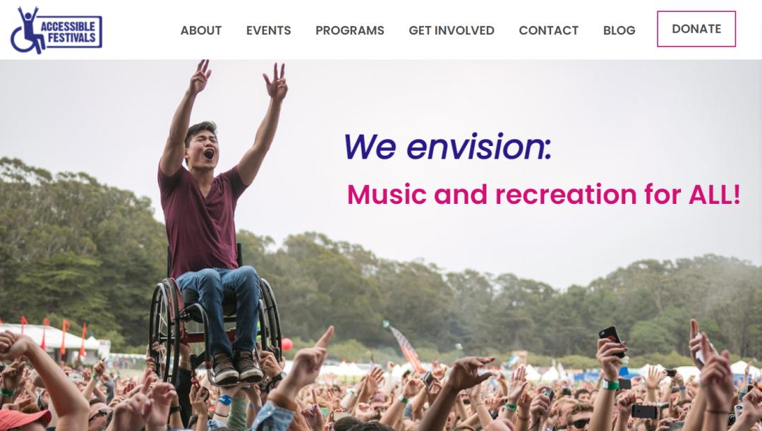 在Accessible Festivals组织官网首页,很明确地回答了为什么要让残障群体参与音乐活动、享受音乐现场。它引用了美国音乐治疗协会 (AMTA) 对同行评审研究期刊进行分析后得出结论,强调音乐可以帮助残障人士减轻压力、增强记忆力、改善沟通、加强感觉处理和运动技能。
