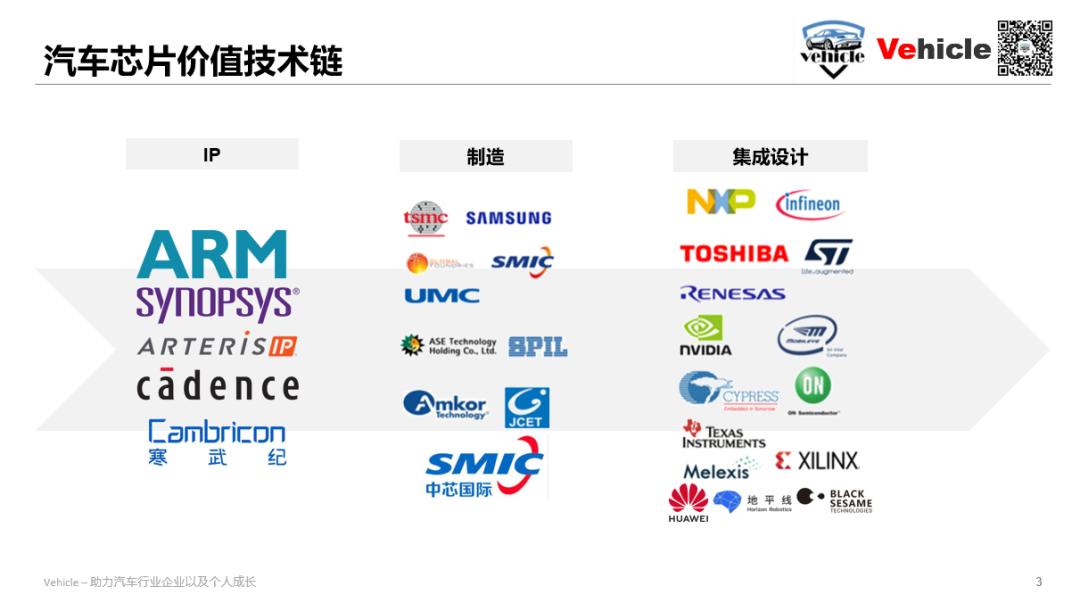 芯片价值的技术链,包含了半导体IP,制造以及集成设计,三个主要部分。