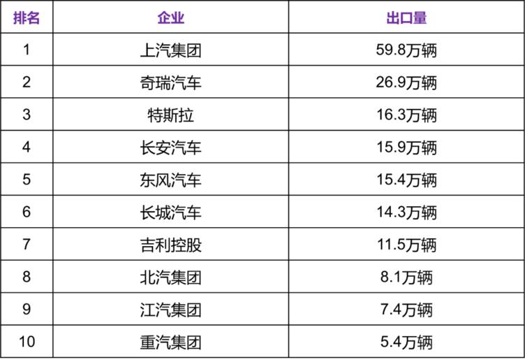 中国汽车出口则在今年有望突破240万辆,超越德国,成为全球第二大汽车出口国,上汽、特斯拉和奇瑞占据中国汽车出口前三名。