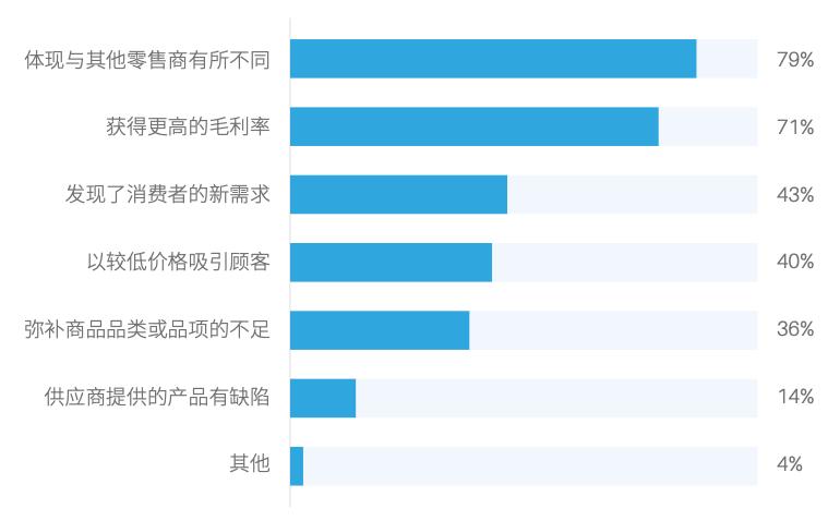 2022年自有品牌产业研究院对于中国零售商的调研结果也显示,“体现差异化”是零售开发自有品牌的首要目的。
