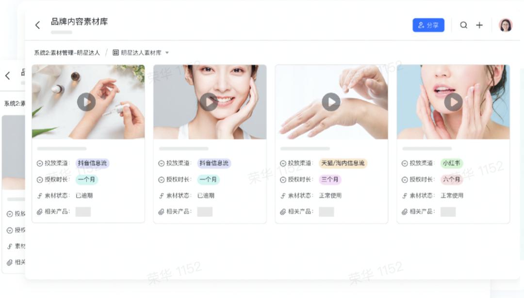 素材上传还要进行人工登记,登记内容往往不规范,使用方式也不够明确,后期还无法追踪。在时效管理方面,由于明星博主的合作内容有明确的使用期限,到期下架需要人工处理,极易遗漏产生违约风险。