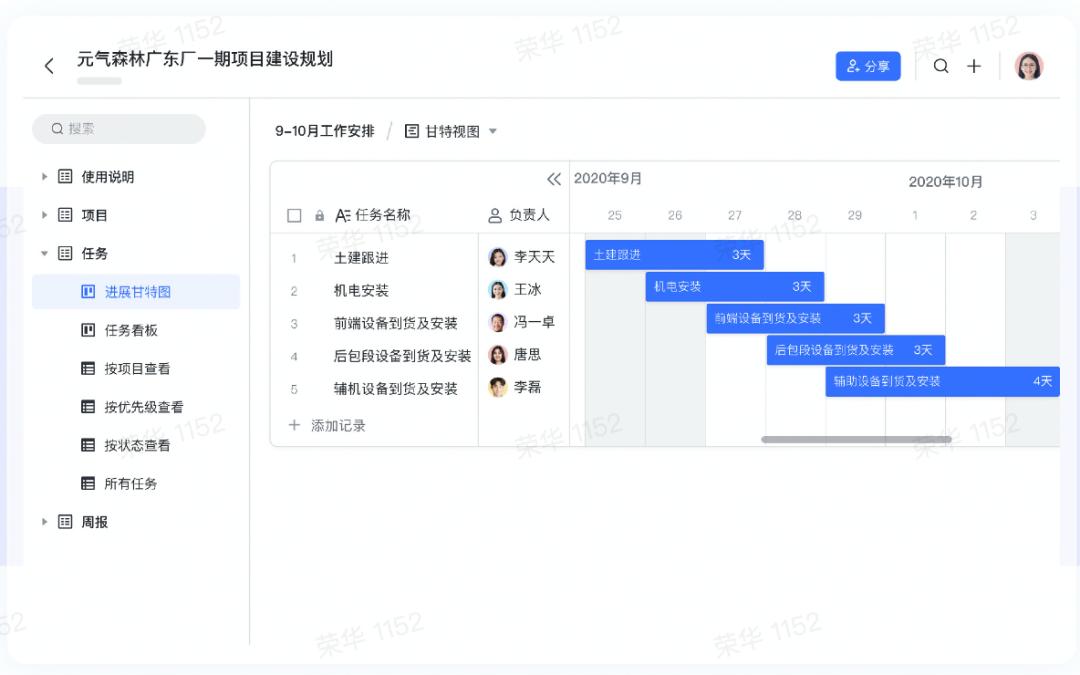 元气森林最终想到的解决办法是把工作流程全面迁移到飞书上,用飞书中的多维表格功能,把原本需要线性推进的工作改为了多线并进的推进方式,极大的调快了工作进度。在这个多维表格中,管理者、施工者、设备方的信息可以做到高度一致,有任何改动和更新都可以实时查看,形成高效的协同配合。