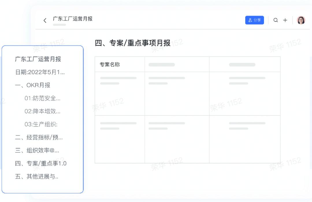 使用飞书后,员工开始将工作重点、设备保养计划、培训计划全部放在飞书月报中,同一个部门可以在一个文件中进行协作,工作进度也一目了然。