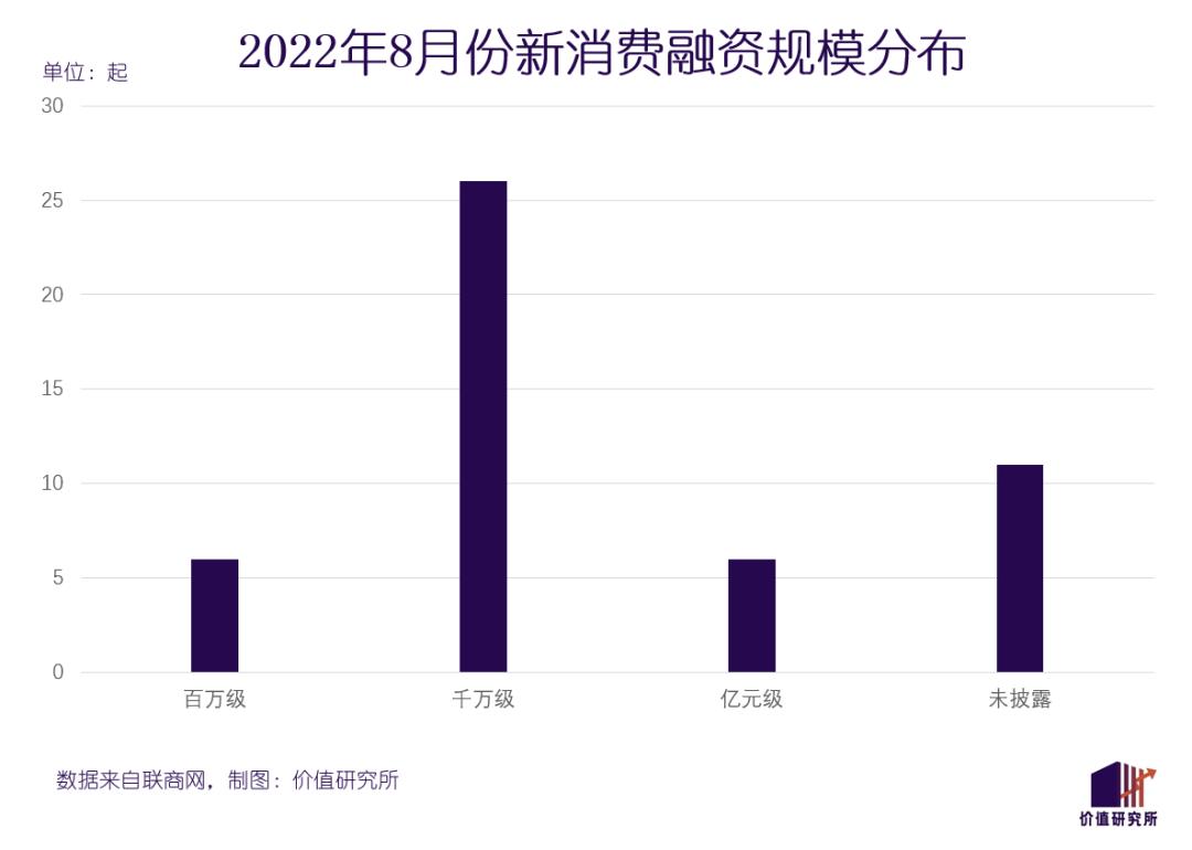 此外,在融资规模上,百万级和千万级的小额融资成为主流。整个8月份公开的新消费投融资事件中,规模过亿的只有6起。
