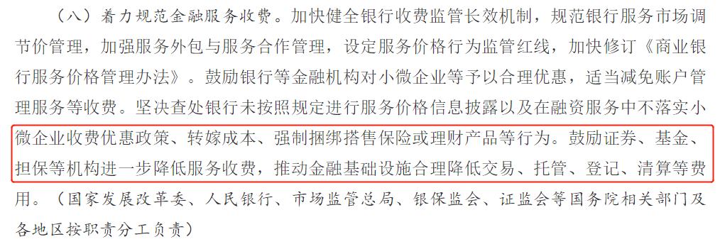 这里说的是鼓励,但也明确表明了监管层的态度。最终落到实施上,降低证券、基金等费率将会是大概率事件。