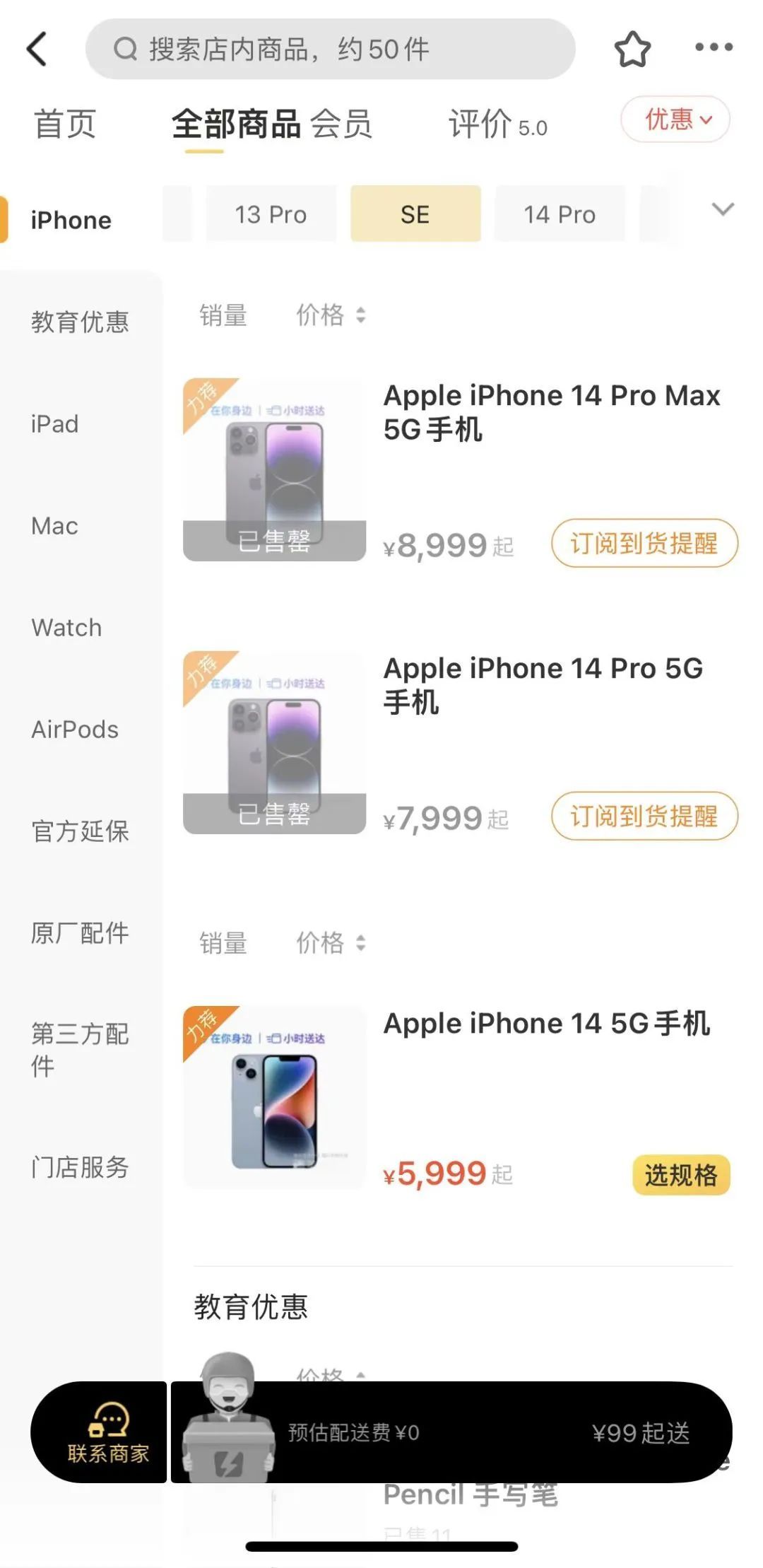下午3点左右,《IT时报》记者在美团上搜索多家苹果授权店发现,Pro和Pro max均已售罄,唯独iPhone 14标准版还能购买。