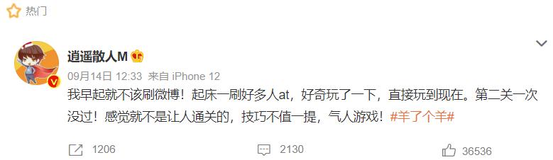 有人认为,《羊了个羊》爆火与逍遥散人、新浪游戏、游戏团等游戏大V参与种草过程有关。确实,他们都带了相关话题发布微博。但硬糖君认为,《羊了个羊》向娱乐圈借东风,才是其破圈的关键。