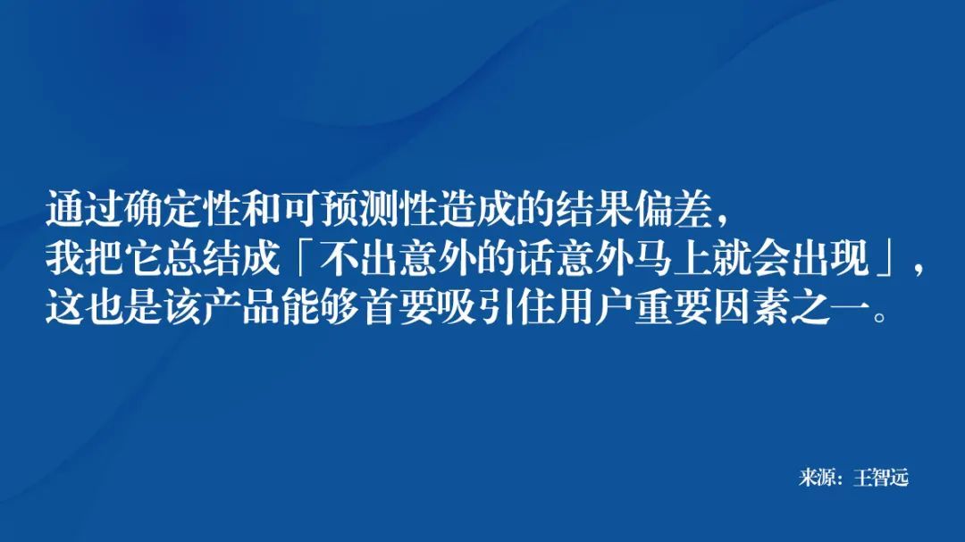 通过确定性和可预测性造成的结果偏差,我把它总结成「不出意外的话意外马上就会出现」,这也是该产品能够首要吸引住用户重要因素之一。