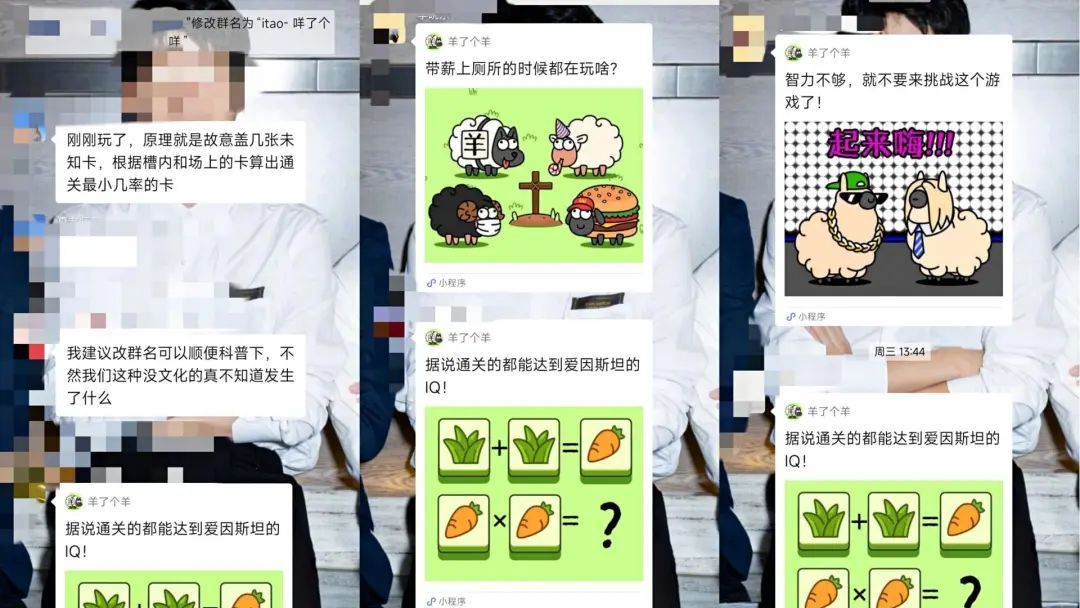 一直到周三中午,我在的一个非常活跃的群,连群名都改成了“羊了个羊”,然后大家都陆续往群里扔链接。彼时的我,也终于按捺不住这颗好奇的心,点开了游戏。