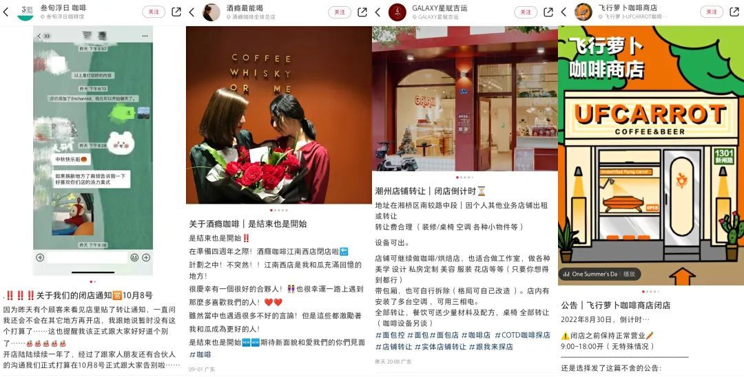 而打开社交分享类平台,近期也有不少“咖啡闭店”的相关分享贴,并且更多的是成立时间不到1年的无奈退场。