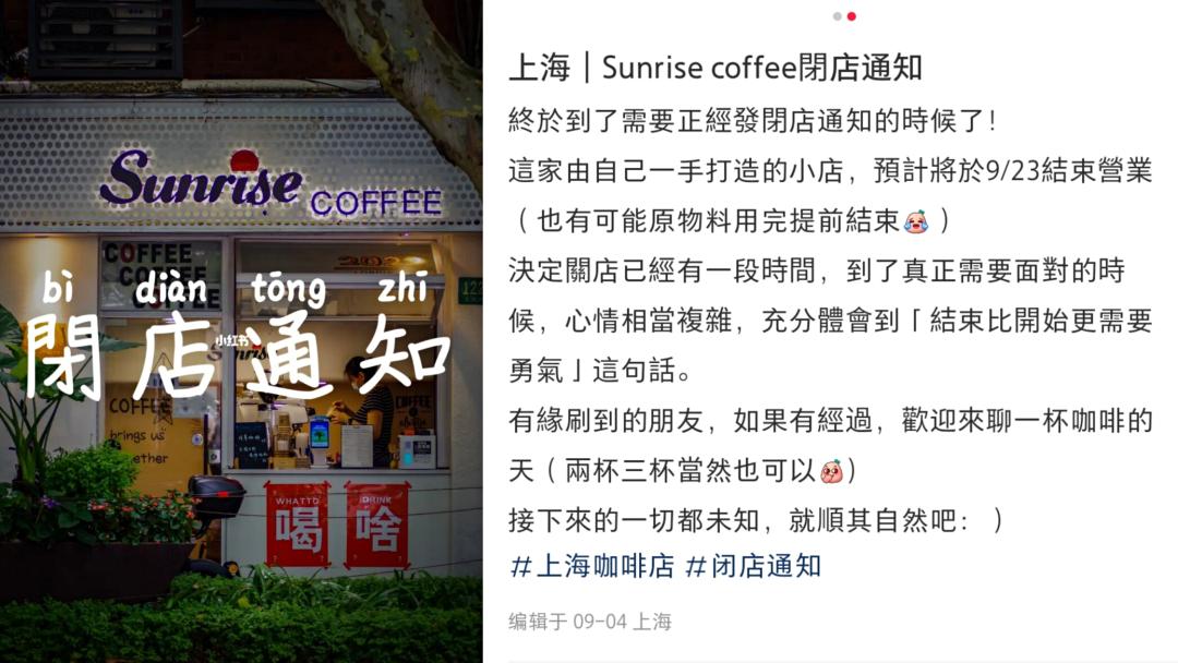 还有上海的Sunrise coffee,2021年10月底正式营业,经历了上海最难熬的封控期后,最终还是在这个月结束营业。