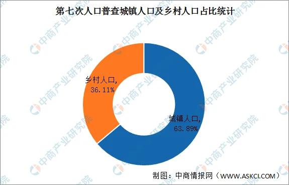 根据第七次全国人口普查显示,居住在城镇的人口为90199万人,占63.89%;居住在乡村的人口为50979万人,占36.11%。